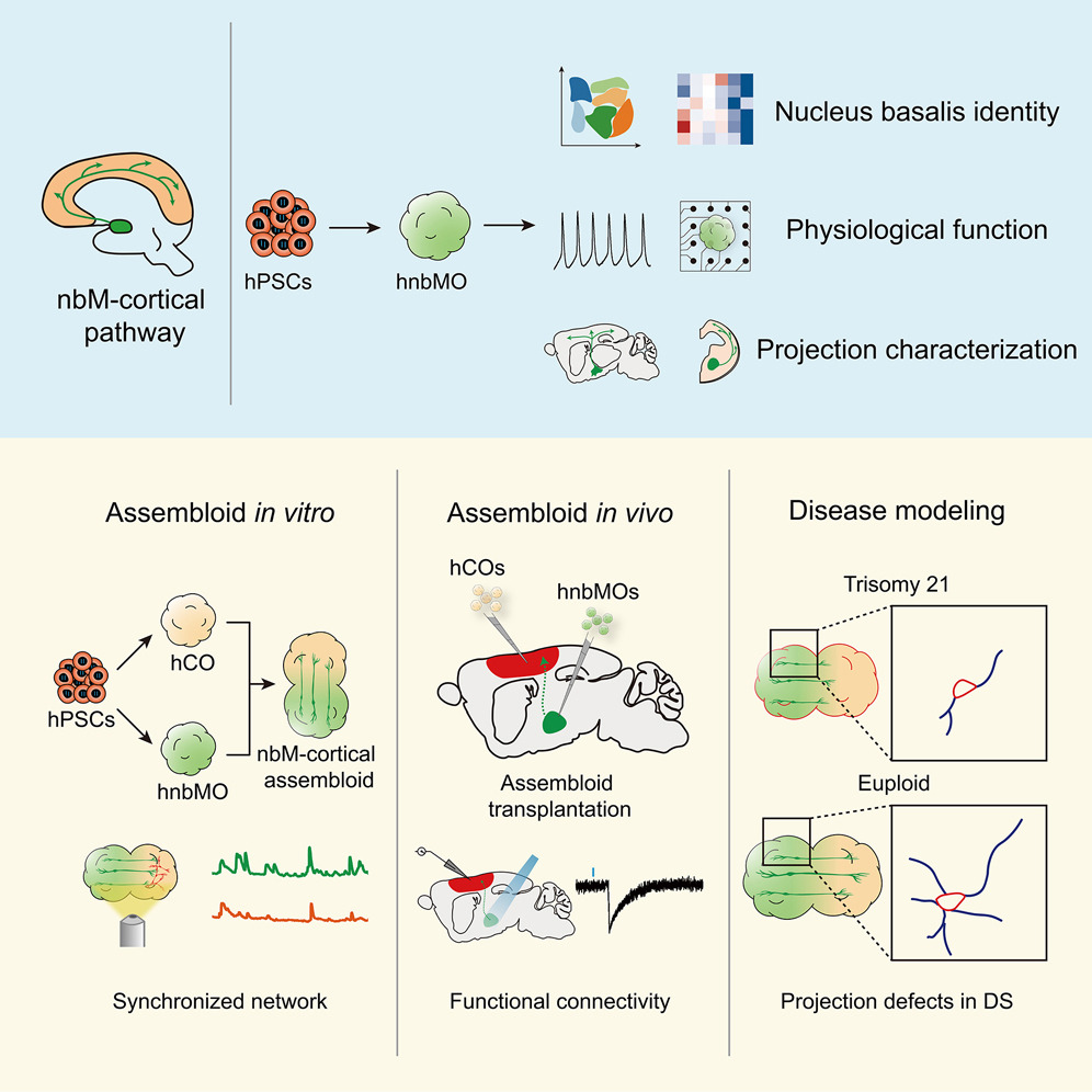• nbM-cortical assembloids model projection deficits in Down syndrome